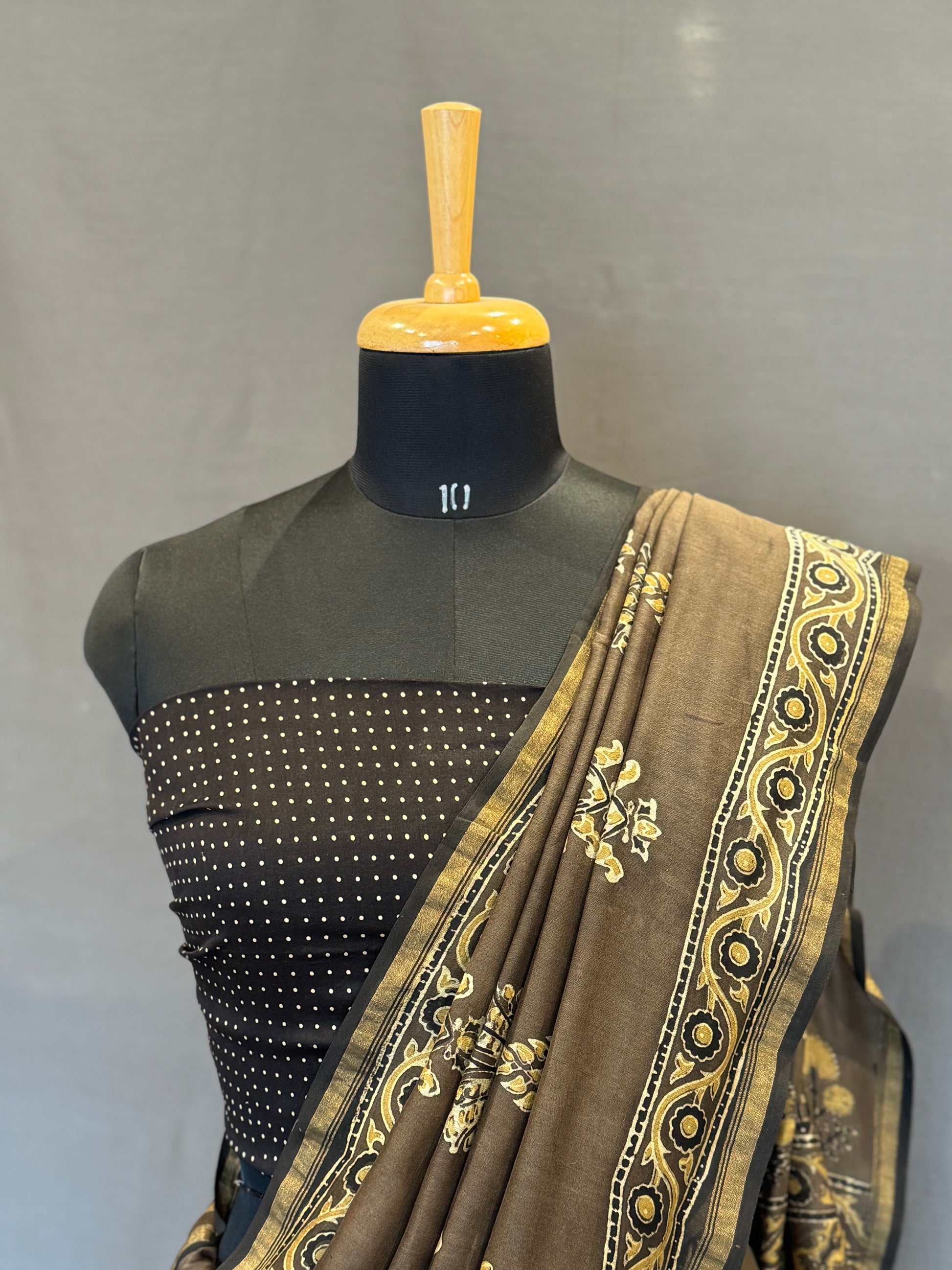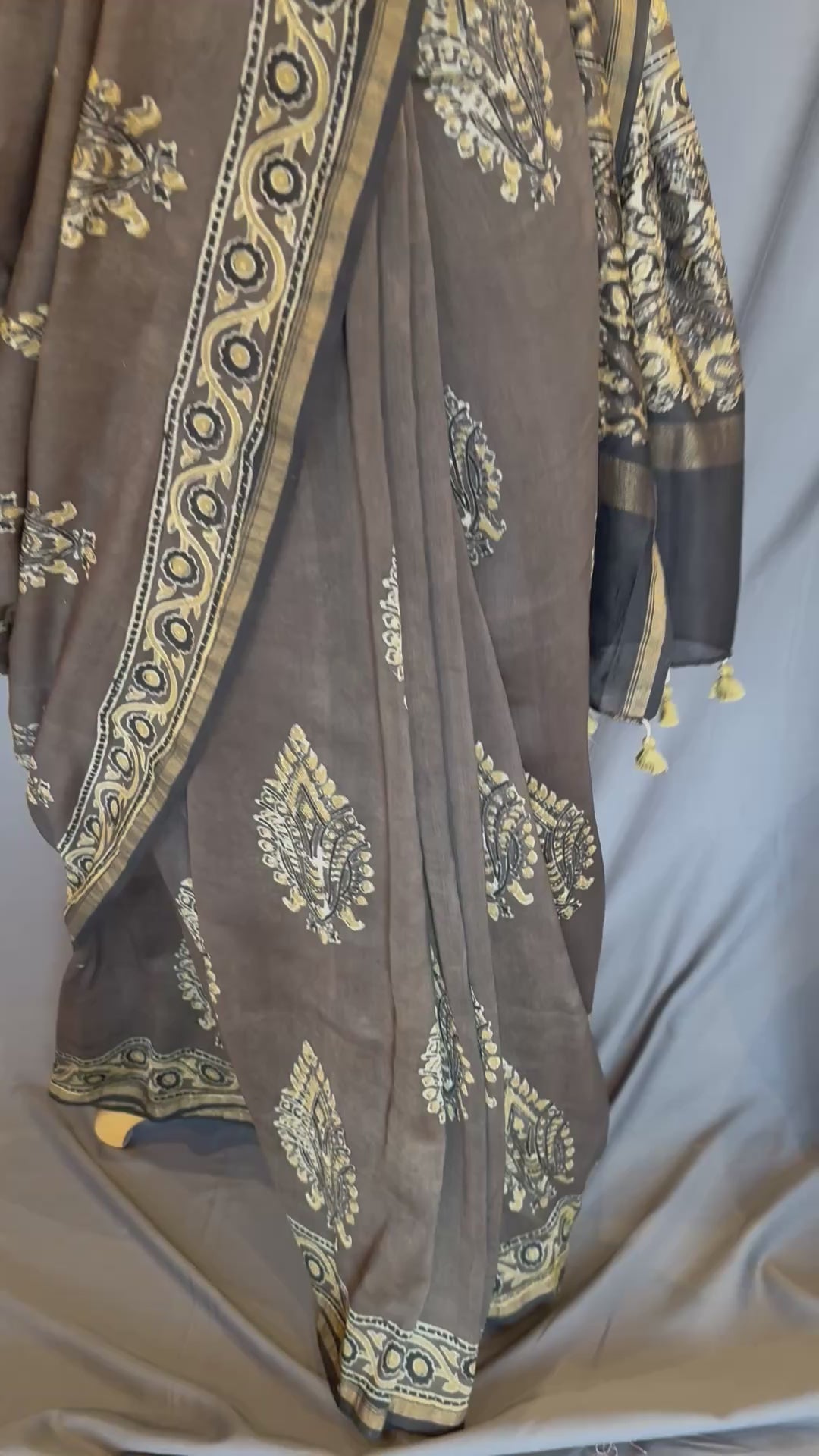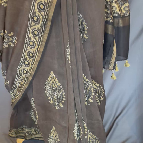 Ajrakh Chanderi Handblock Saree-Grey